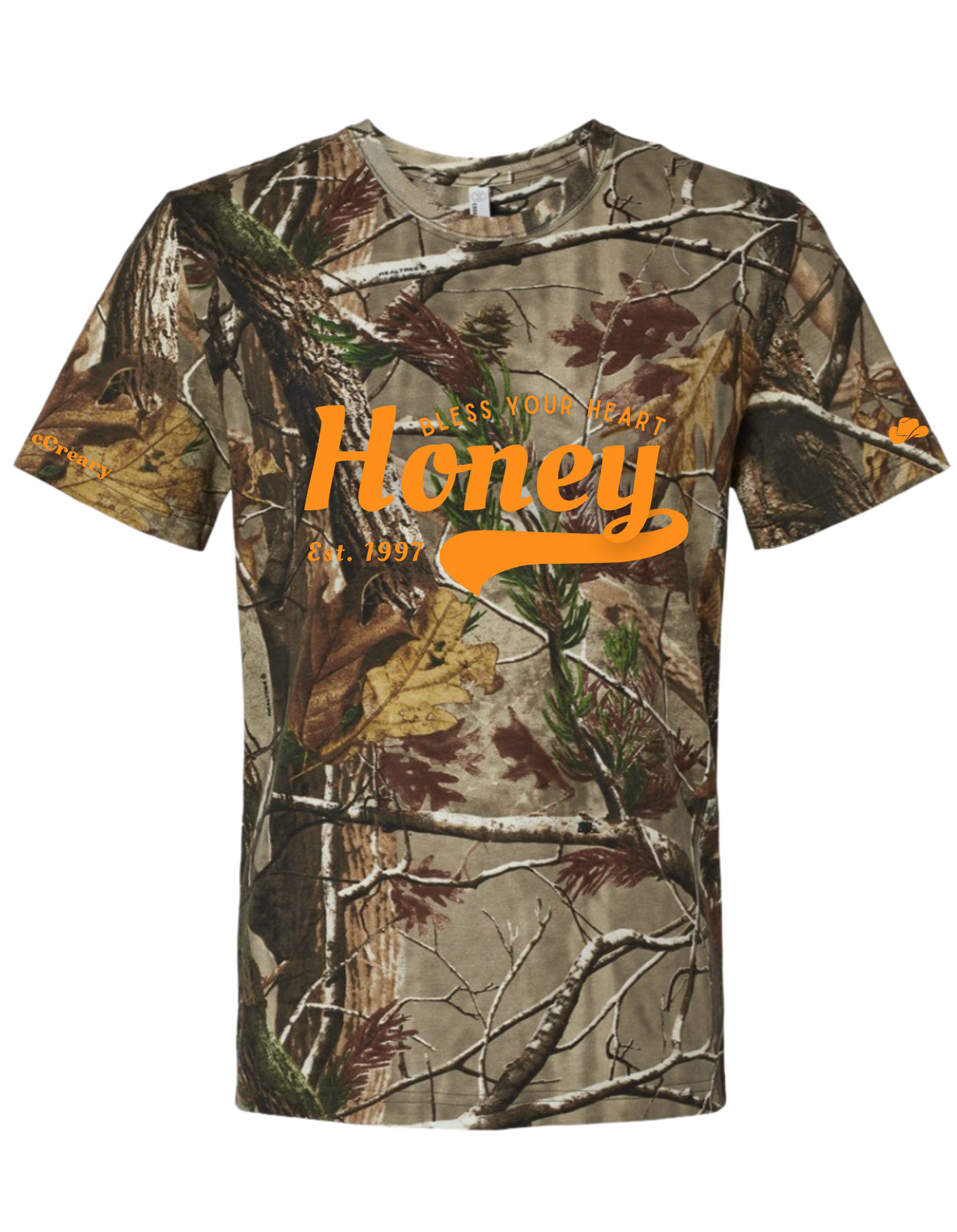 Stand out while blending in with our playful Bless Your Heart Camo T-Shirt! This sassy tee combines authentic Real Tree camouflage with that sweetly savage Southern phrase we all know and love. Perfect for country music fans, outdoor enthusiasts, or anyone who appreciates a good-natured jab delivered with a smile. Wear it hunting, to concerts, or just lounging around—because nothing says "I'm fun but fierce" quite like camo and a touch of Southern charm!