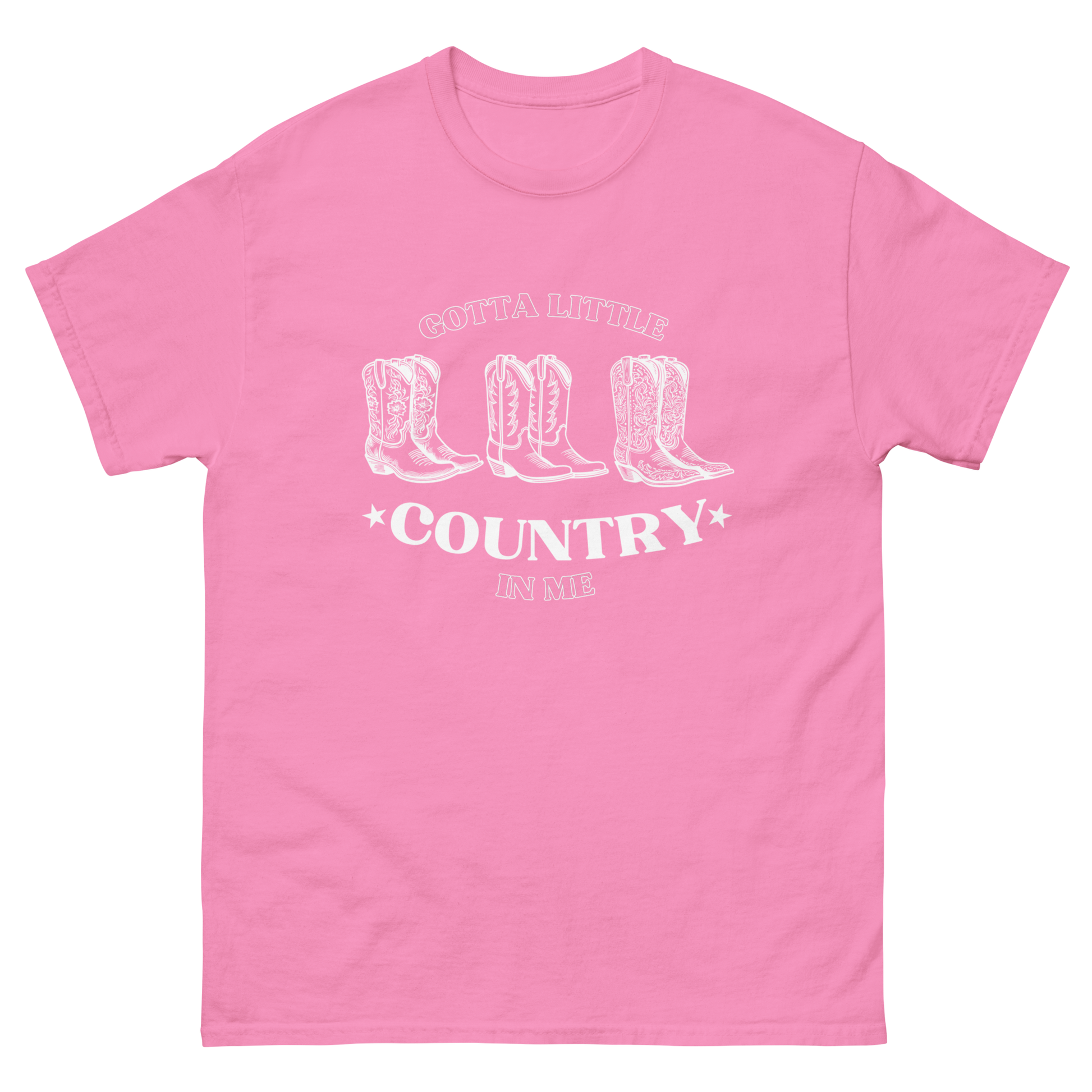 Stand out from the crowd with our signature "Country in Me T-Shirt" featuring an eye-catching boot design inspired by the chart-climbing single. Expertly printed on high-quality Gildan cotton, this unisex tee delivers all-day comfort while showcasing your country roots. Perfect for concerts, casual outings, or simply making a statement—this shirt isn't just merchandise, it's a lifestyle declaration. Get yours today and wear your country pride with every step.